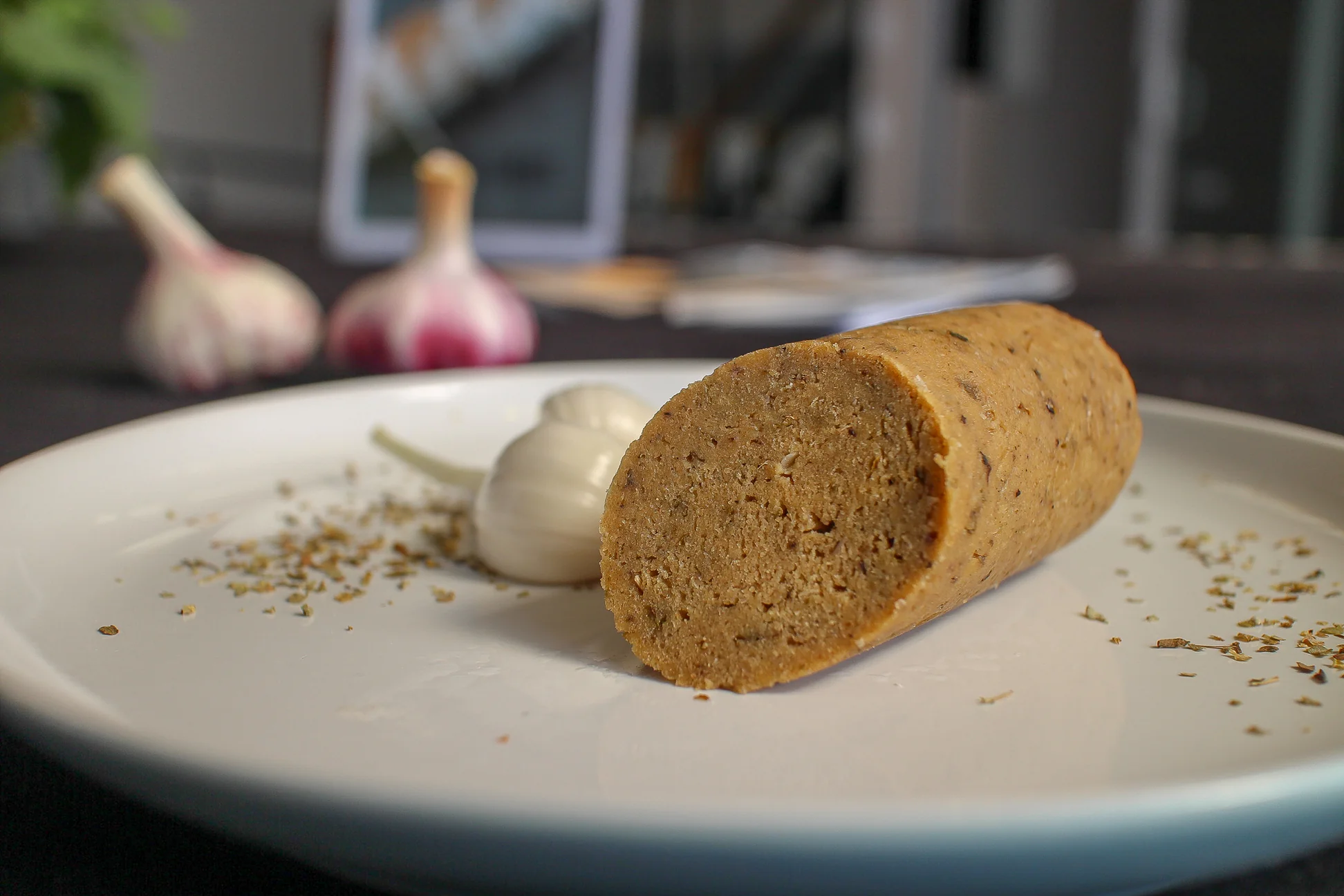 A semi-soft, garlicy, herby, pork-style sausage with dried marjoram and new season garlic. This one is delicious fried, added to a pizza or thrown into soups and stews. Can be eaten cold but best cooked whole or in pieces. Eat it as a breakfast sausage or add to a cassoulet. Works as a great pork substitute. 200g