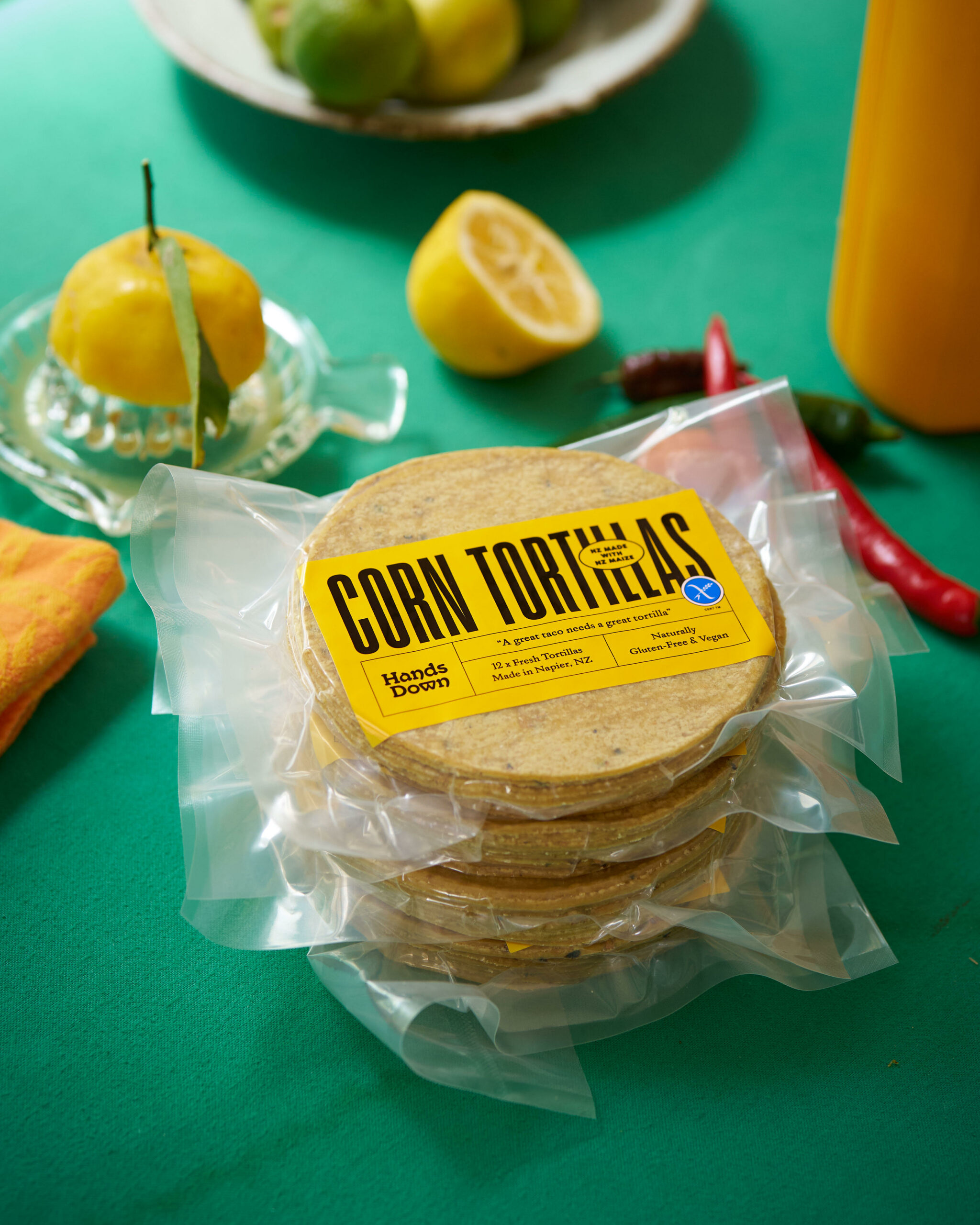 Hands Down Corn Tortillas are a fresh product made to order. They are Vegan and naturally Gluten Free and contain no additives or preservatives. They are made with traditional methods from four ingredients: corn, water, salt, and calcium hydroxide from naturally occurring limestone. With the exception of their salt, which comes from Marlborough, all of their ingredients are sourced from the Te Matau-a-Māui Hawke’s Bay Region. We are proud to support Hands Down by being our No.1. supplier of Corn Tortillas! They are the best tortillas we have tried!